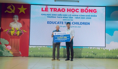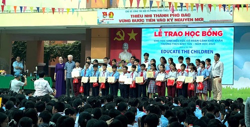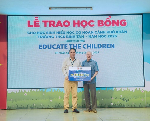 Sáng ngày 18/09/2025, tại trường THCS Bình Tân – TP.HCM, Hội Bảo Trợ Bệnh Nhân Nghèo TP. HCM đã trao 30 suất học bổng cho các cháu học sinh hiếu học có hoàn cảnh khó khăn đang học tại trường. Những suất học bổng này là do Educate The Children (ETC) ủng hộ Hội. Educate The Children (ETC) đã ủng hộ Hội 12.000 USD năm 2025 để giúp học bổng cho các cháu ở TP. HCM và các tỉnh, nâng tổng số tiền ETC tài trợ cho Hội từ năm 2008 đến nay lên đến 180.000 USD giúp học bổng cho các cháu.