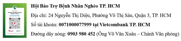 750 bệnh nhân nghèo ở Hoài Nhơn, Hoài Ân và Phù Mỹ thuộc tỉnh Bình Định (cũ) xin được mổ mắt miễn phí vào ngày 31/10 và 01, 02/11/2025, mà kinh phí chương trình mắt của Hội Bảo Trợ Bệnh Nhân Nghèo TP. HCM thì đang khó khăn. Kính mong cô chú, anh chị em nếu thuận lợi, xin chung sức cùng Hội giúp bà con, tổng kinh phí cho đợt mổ mắt lần này lên đến 1,2 tỷ đồng (1.600.000đ/ca*750ca). Xin trân trọng cảm ơn. Xin được tiếp nhận tấm lòng nhân ái của các cô chú, anh chị em nhà tài trợ qua tài khoản như sau: