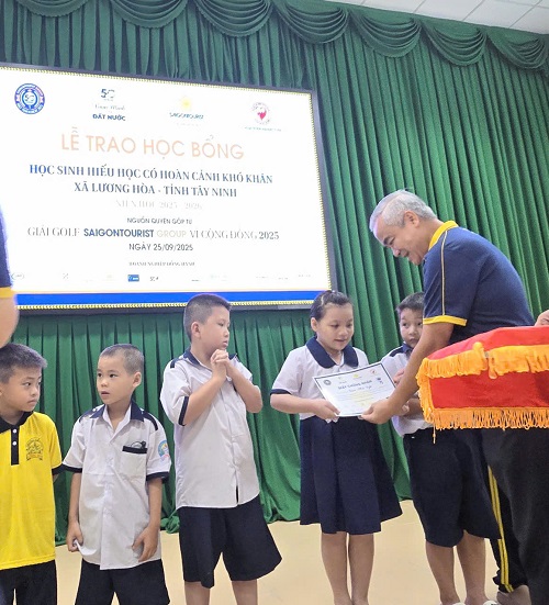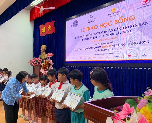 Ngày 25 và 26 tháng 9 năm 2025, tại tỉnh Tây Ninh, Lễ trao học bổng “Saigontourist Group vì Cộng đồng” cho các em học sinh hiếu học có hoàn cảnh khó khăn niên học 2025-2026 đã diễn ra. Chương trình do Hội Bảo trợ Bệnh nhân nghèo TP.HCM phối hợp cùng chính quyền địa phương tổ chức.