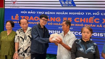 Trân trọng cảm ơn Chị Nguyễn Ngọc Mỹ – Giám đốc Công Ty TNHH Giao nhận Hàng hóa Việt Công (Vietco Logistics) đã tài trợ Hội Bảo Trợ Bệnh Nhân Nghèo TP. HCM 55 chiếc xe lăn cho người khuyết tật có hoàn cảnh khó khăn đồng hương xã Củ Chi, TP. HCM, giúp bà con được thuận lợi hơn trong cuộc sống hằng ngày.