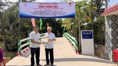 Khánh thành Cầu Miễu Bà – ấp Đại An, xã Chợ Lách, tỉnh Vĩnh Long. Cầu có chiều dài 21m, rộng 3,5m, tải trọng hơn 5 tấn, kinh phí 257 triệu đồng.