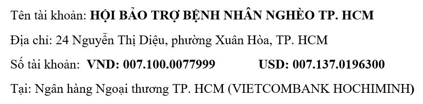 Hội Bảo Trợ Bệnh Nhân Nghèo TP. HCM trân trọng cảm ơn: 1. Chị Đỗ...